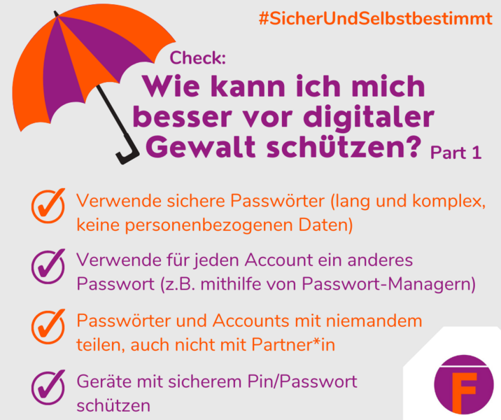 Mit der Aufklärungsreihe #SicherUndSelbstbestimmt hat FHK digitale Materialien erarbeitet, die Frauenhäuser und Fachberatungsstellen für ihre Öffentlichkeitsarbeit nutzen können. Gegenstand sind Fragen wie: